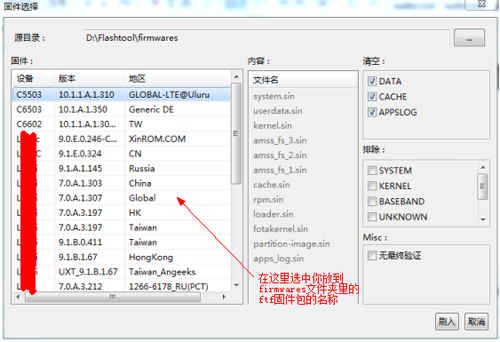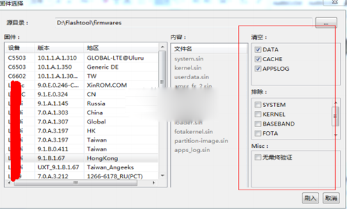 8:選擇你手機相應的固件後,右邊清空數據打勾。