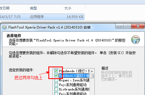 6:接下來是安裝Flashtool驅動,進入drivers文件夾運行Flashtool-drivers.exe,一直下一步下一步,遇到勾選的時候如下圖勾選兩項。