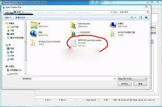 2:如下圖點擊工具右側【Scatter-loading】,在彈出來的選項框中找到解壓的線刷包位置,選擇線刷包中的 【MT6735P_Android_scatter.txt】文件。