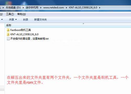 1:把上面下載下來的刷機包在電腦上進行解壓,如下圖,然後解壓出來有個文件夾,文件夾裡還有兩個文件夾,一個文件夾裡面放的是刷機工具,一個文件夾裡面放的是rom文件,一會要用到。