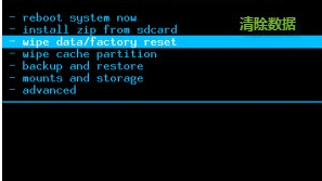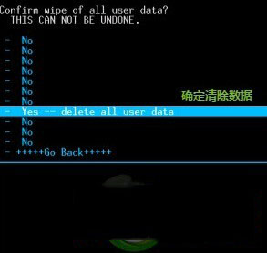 3、wipe data/factory reset清除數據,yes,delet all user data確定清除。