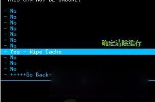 4、wipe cache partition清除緩存,Yes, Wipe Cache確定清除緩存。