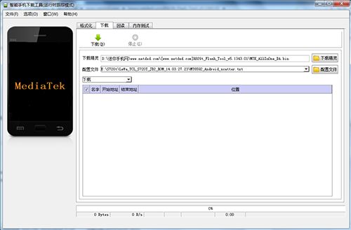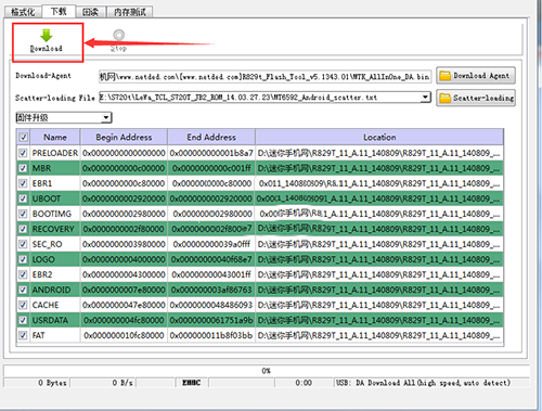 5:然後點擊【配置文件】,然後選擇升級包文件裡的【MT6582_Android_scatter.txt】文件,等待文件導入,導入軟件OK,選擇【固件升級】這一項,然後再點擊【Download】按鈕。