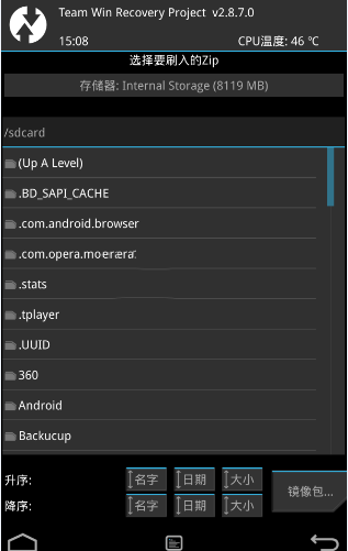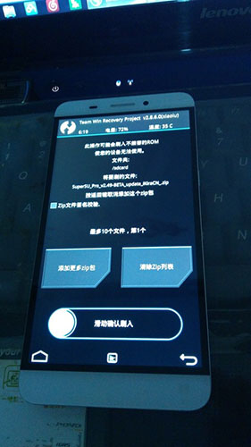 4:清理完成之後返回到recovery主界面,點擊 “安裝刷機包”,即可系統目錄選擇文件。選擇“Up A Level”,即可返回至根目錄。emmc/ 為手機內置存儲目錄,sdcard/ 為外置sd卡目錄。找到剛剛准備好的zip格式rom包,點擊它,然後滑動下方按鈕“滑動確認刷入。