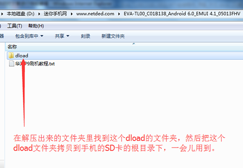 1:下載華為P9的固件包,下載下來後先解壓,解壓完成後會出現一個dload目錄。
