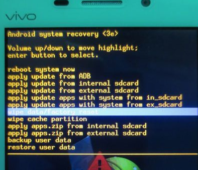 5:然後進行雙清,按音量鍵選擇wipe data/factory reset(清除用戶數據並恢復出廠設置)和wipe cache partition(清除系統緩存),這兩項以就是雙清操作,操作完成之後再進行下一步的操作。