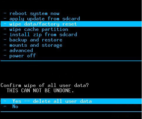 3:進入recovery之後先要做的就是雙清,也就是大家常說的雙wipe了,在藍色recovery界面依次執行,按音量鍵選擇,按HOME鍵確認。