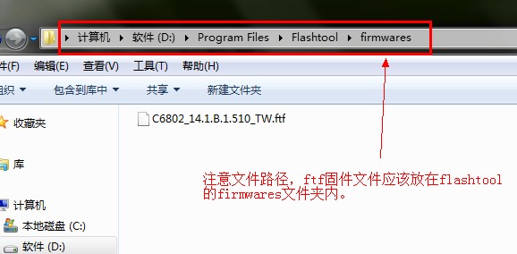 2.將我們下載來的ftf格式刷機包放在flashtool安裝目錄下的【firmwares】文件夾下。
