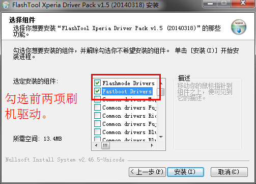 1.安裝好flashtool刷機驅動,下圖中紅框內兩項必須勾選。