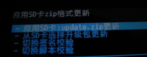 6:然後選擇 從 SD卡選擇升級包更新,choose zip from sdcard, 電源鍵確認進入。