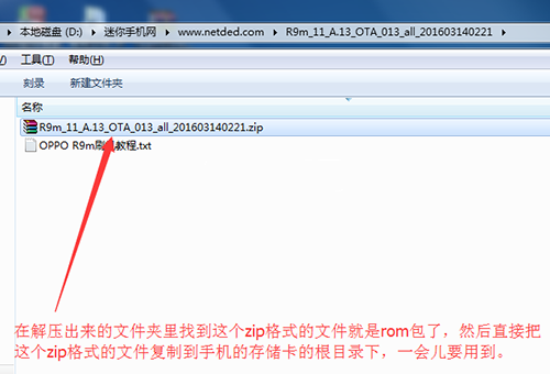 2:把上面下載好的rar格式的升級包在電腦上進行解壓,如下圖,然後找到zip格式的升級包(這個zip格式的包不用解壓)直接復制到手機存儲根目錄,最好是手機存儲卡的根目錄下。