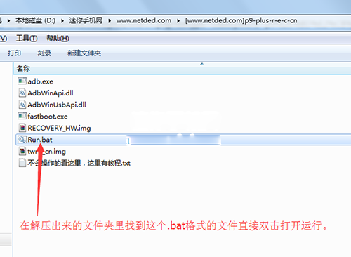 3:然後把上面下載下來的recovery工具包在電腦上進行解壓,解壓出來一個文件夾,然後在文件夾裡找到【Run.bat】文件直接雙擊打開運行,然後根據提示按回車鍵操做就可以了。