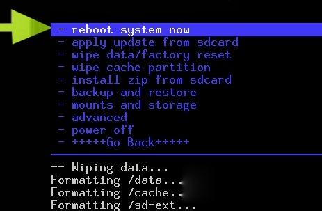 7.安裝完成後,返回Recovery模式主界面,選擇"reboot system now"並確認,手機自動重啟,刷機完成。