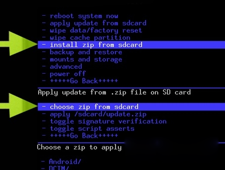 5.選擇“install zip from sdcard” ,繼續在“install zip from sdcard”選項下,選擇“choose zip from sdcard”。