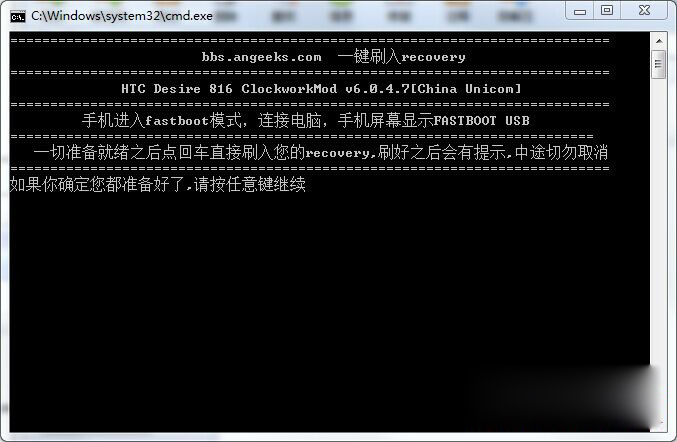 5.把下載的recovery工具解壓,打開裡面的“recovery.bat”,在下面的窗口中按照提示就可以刷入recovery了。