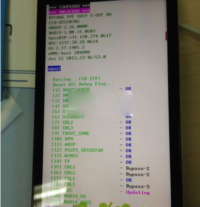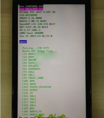 5:然後會自動讀取你的ruu,並提示你是否刷入,按音量上鍵,確認刷入。