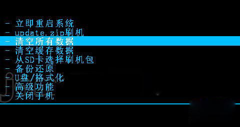 4:進入recovery模式之後先選擇“清空所有數據”,然後選擇“是,清空所有數據”,按電源鍵確認即可。