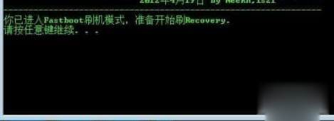 4:窗口顯示“你已進入Fastboot刷機模式,准備開始刷Recovery”,這時任意鍵開始。