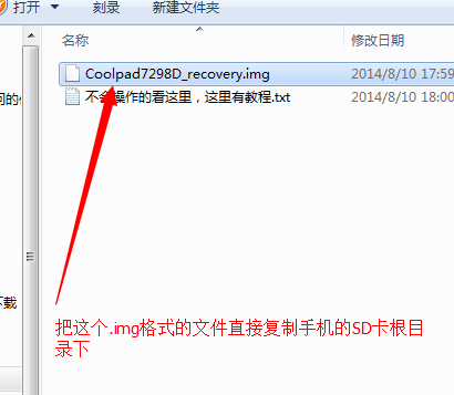 1:把上面下載並解壓出來的【Coolpad7298D_recovery.img】文件,也就是.img格式的文件,直接復制到手機的SD卡根目錄下。