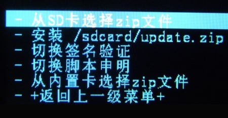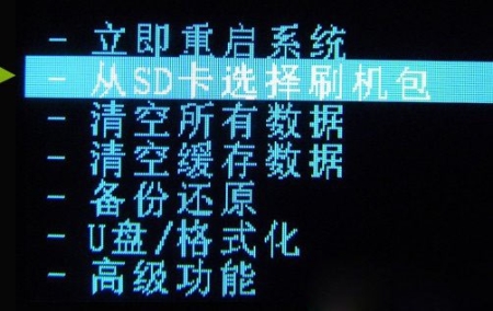 3、清除完成後,我們再選擇從SD卡選擇刷機包選項。
