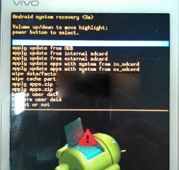 3:按音量鍵 選擇Recovery Mode,再按鎖屏鍵進入Recovery Mode,看到以下畫面說明成功進入Recovery Mode(耐心等待5秒左右),【recovery中按鍵操作說明:音量+ -分別為上下選擇鍵 ,鎖屏鍵為執行鍵(確認鍵)】。