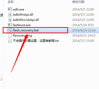 4:接著在解壓出來的文件夾裡找到【flash_recovery.bat】文件,然後直接雙擊打開就可以了,然後軟件識別手機就會自動刷入。