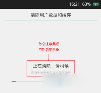 3:然後選擇【清除數據和緩存】,點擊 【清除用戶數據和緩存】直到完成。