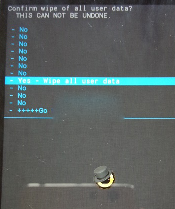3:進入recovery界面之後先進行雙清,(按音量鍵表示選擇,按開機鍵表示確認),依次執行如下圖: