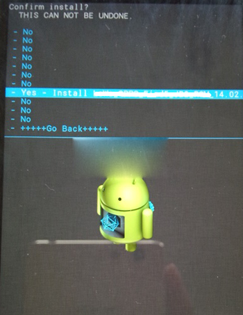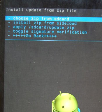 4:雙清之後按音量鍵選擇install zip,然後再選擇choose zip from sdcard,然後找到剛才放到手機sd卡裡zip格式的rom刷機包XXXX.zip,然後按音量鍵選中,然後按HOME鍵確認,接著選中Yes-install XXXXX.zip並確認開始刷機。