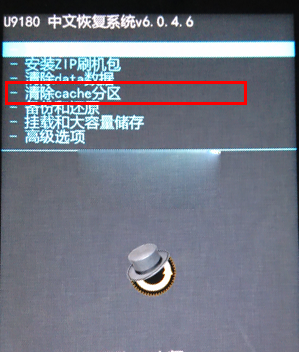 4:返回到recovery主界面,然後用音量鍵選擇【清空Cache分區】,然後再選擇【是的-清空Cache緩存】然後按電源鍵確認。