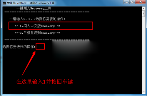 4:接著在解壓出來的文件夾裡找到【點擊recovery.bat】文件,然後直接雙擊打開,直接輸入1並按回車鍵。
