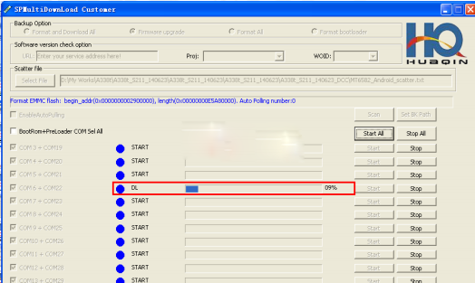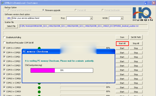 4:點擊【Start All】,待紫紅色進度條跑完,這個不是在刷機,而是在校驗你剛選擇好的文件包。