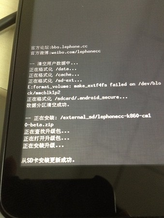 4、返回主菜單選擇“選擇更新”“SD卡更新”,選擇你下載的ROM,開始刷機。