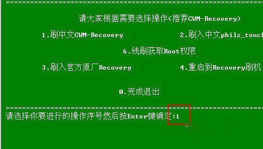 第四步:工具運行之後,我們選擇第二項“刷入中文cwm-recovery”,如下所示: