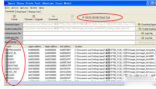 7、然後點擊勾選”DA DL All With Check Sum”,檢查name處,要全部打鉤: