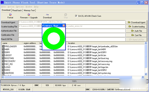 9、手機在關機狀態下,用usb線將手機與電腦端連接,自動開始下載,無需任何操作,如下圖顯示:(下載時間有點長,請耐心等待)