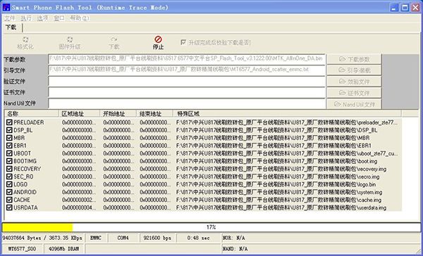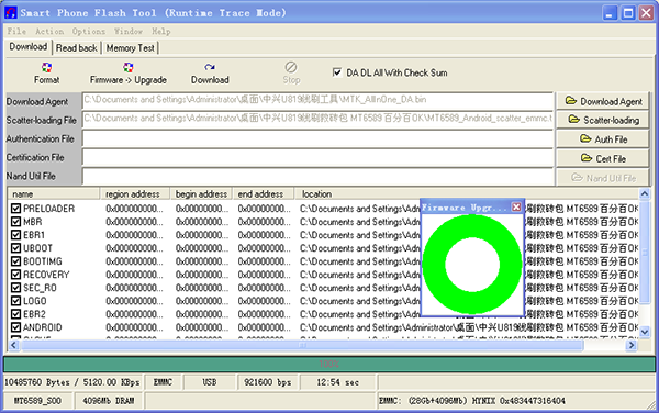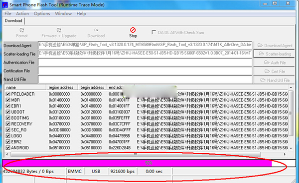 3、配置好軟件後軟件會自動讀條,等待軟件停止後按【Download】按鈕,此時手機在關機狀態下連接電腦。