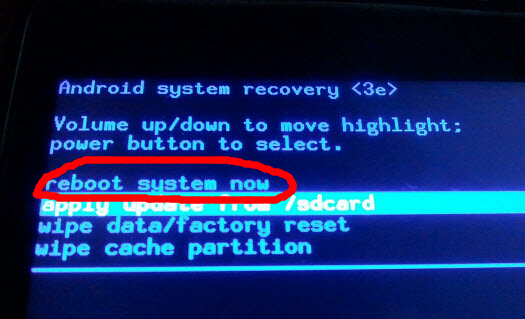 4、刷入完成後recovery回到默認界面,選擇reboot system now重啟手機。