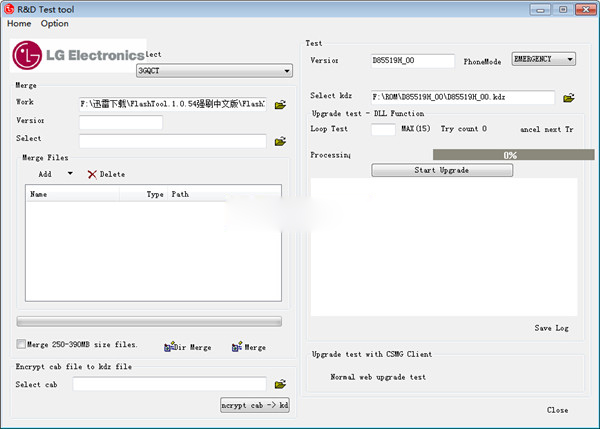 1、首先下載附件並解壓,運行“\KDZ_FW_UPD_EN\B2CAppSetup.exe”文件,等待安裝完成,安裝完成會後自動打開工具,打開後請手動關閉。然後打開同目錄下的「UpTestEX_mod2_marwin.exe」文件,打開後如圖: