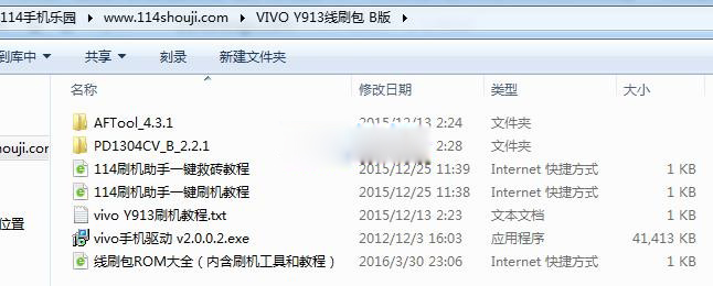 1、下載VIVO Y913線刷包,步步高Y913有兩個版本,區分方法:關機狀態下,長按音量下鍵+開機鍵 A版:顯示PD1304CV_A B版:顯示PD1304CV_B,下載後解壓。