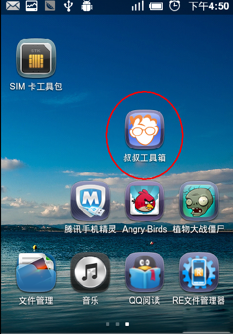4、安裝好移動叔叔工具箱的話,手機桌面上會多一個移動叔叔的圖標,如下圖,然後點擊打開這個圖標。