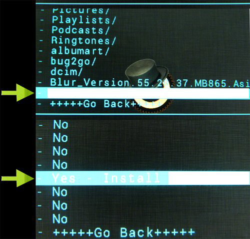 4、雙清之後,按音量上下鍵選擇install zip from SDcard後,接著繼續選擇choose zip from sdcard,然後就可以看到sdcard所有文件夾,找到剛才放到手機sd卡根目錄下的zip格式的rom刷機包並且選中,然後電源鍵確認,然後在選擇yes並確認後即可開始刷機。