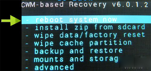 5、刷機提示完成後,回到recovery的主界面,然後選擇reboot system now重啟。如果看不到這一項,音量鍵移動到最下面,會看到go back,可返回上級菜單。