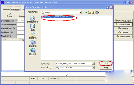 6:然後在剛才解壓出來的image文件夾中選擇MT6589_emmc_VV01.0.026.00-user.txt。(注意:這個文件的名字不同的固件有所不同)