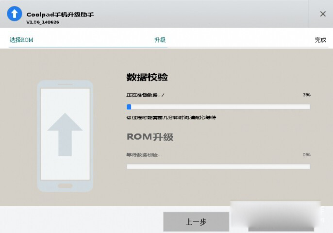 2、校驗成功後,將你的酷派5313S關機,同時按住【音量上】、【音量下】和【電源鍵】,手機將進入fastboot模式,將手機用USB連上電腦,手機即將進行自動升級,等待10-15分鐘,升級成功後,將會自動重啟進入系統。