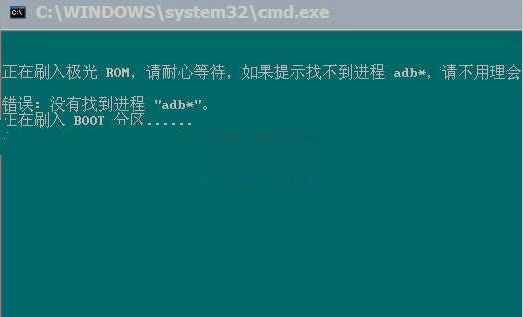 2:我們雙擊上圖中的“開始刷機.cmd”程序,彈出如下圖所示的運行界面: