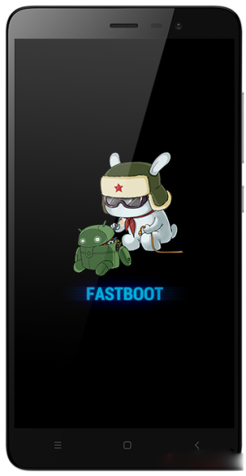 4、將手機關機,然後長按“電源鍵”及“音量減鍵”,進入FastBoot模式(也稱兔子模式、Bootloader模式);如下圖: