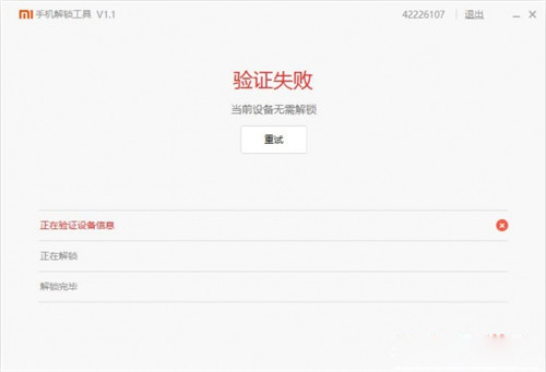 8、解鎖過程中請勿移除手機,直到界面顯示解鎖成功為止。(該手機已經過解鎖,所以提示該設備無需解鎖)如下圖:
