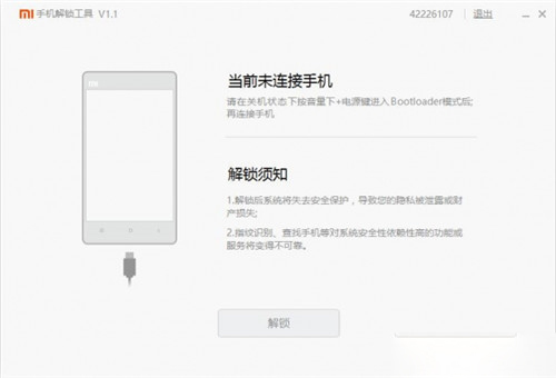 7、鏈接手機和電腦(需提前安裝MiFlash工具以方便安裝驅動,MiFlash工具下載,建議按照原始路徑進行安裝,避免驅動出錯),然後點擊“解鎖”按鈕;如下圖: