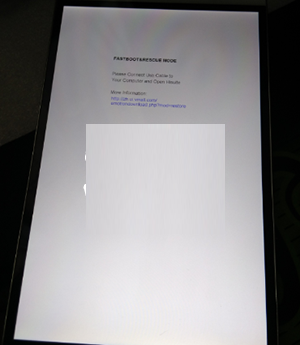 3:接下來手機要進入FastBoot模式,進入的方法:在手機關機狀態下,按住音量減少和電源鍵,當屏幕中出現一只安卓機器人則已經進入FastBoot模式,如下圖所示: